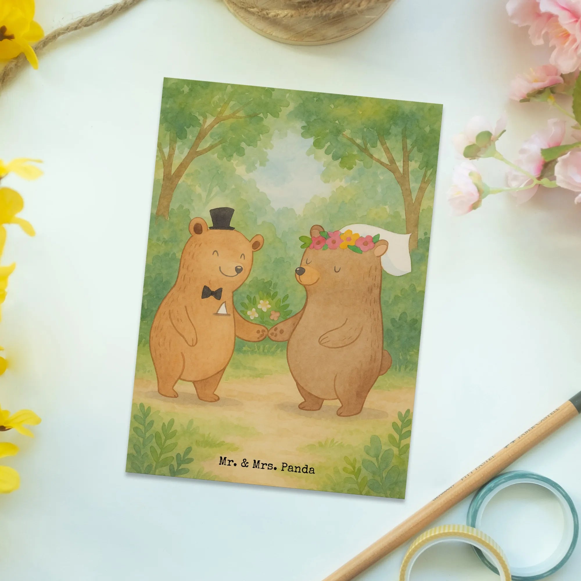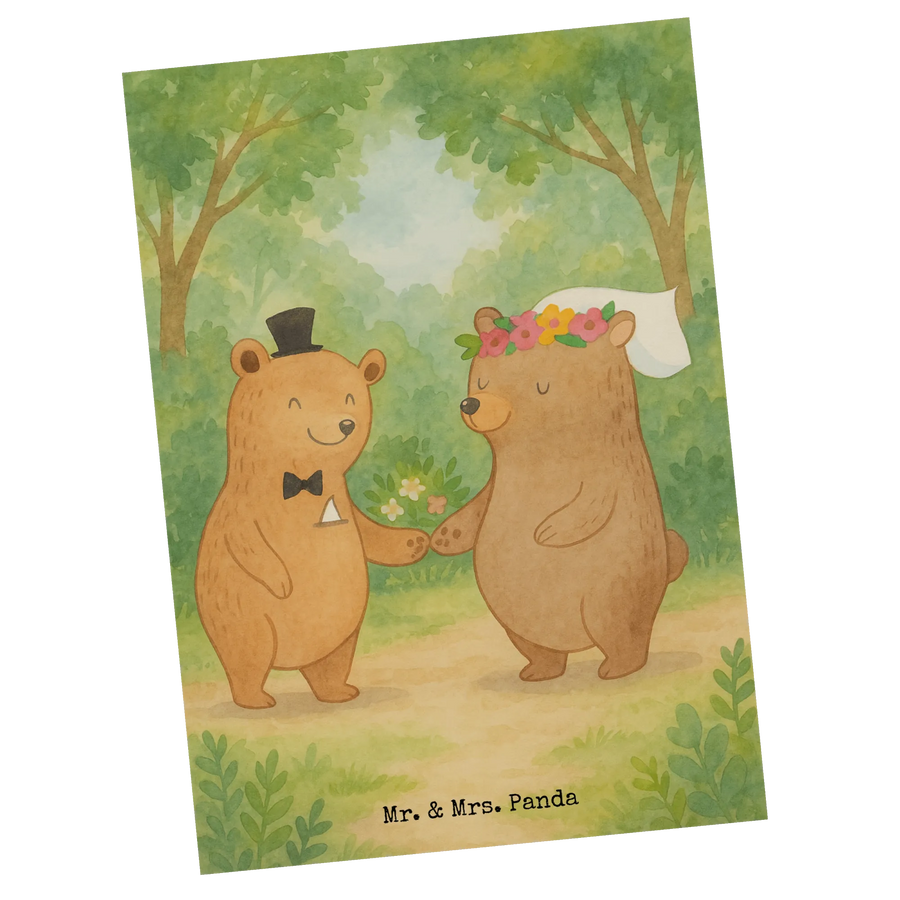 Zauberhafte Hochzeits-Postkarte „Bären Heirat“ von Mr. & Mrs. Panda