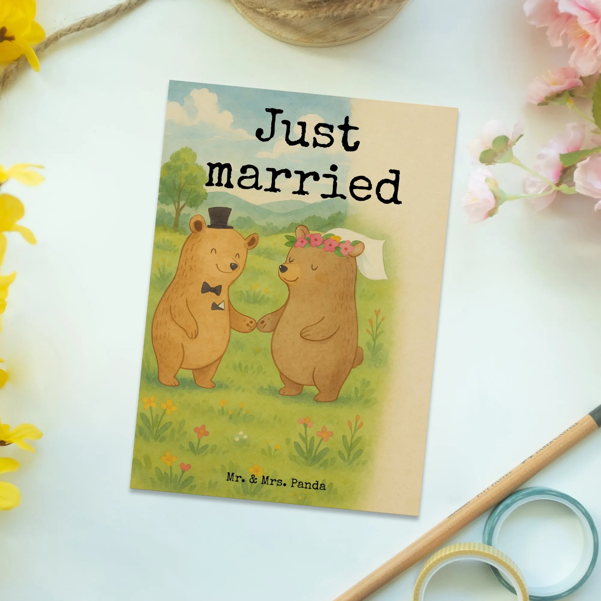 Postkarte Bären Heirat Design – Mr. & Mrs. Panda
