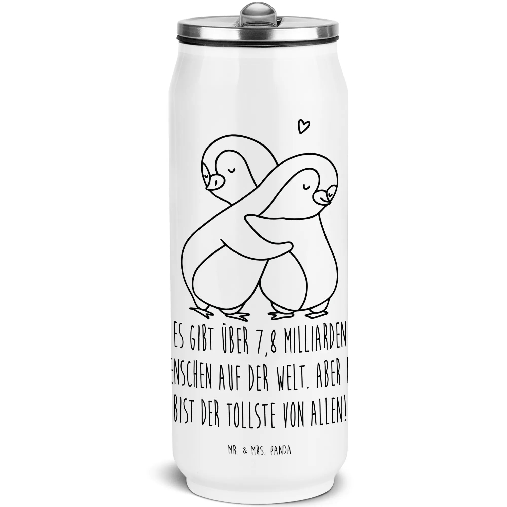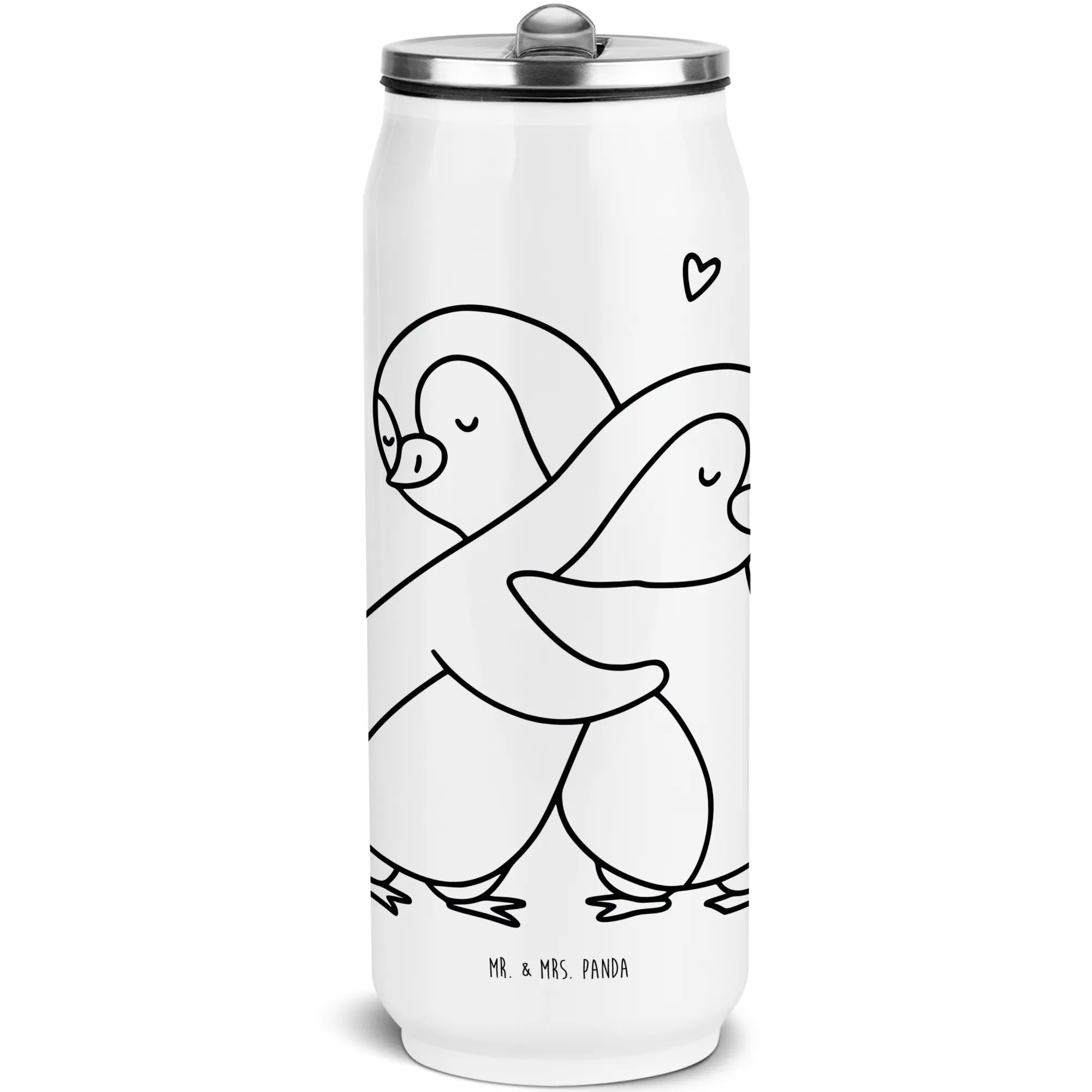 Mr. & Mrs. Panda präsentiert: Getränkedosen Trinkflasche „Pinguine Kuscheln“