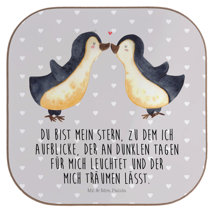 Du suchst nach dem perfekten Geschenk für dein Liebespaar oder deinen besonderen Menschen? Dann ist unser wunderschöner Untersetzer "Pinguin Liebe" von Mr. & Mrs. Panda genau das Richtige! Dieser quadratische Untersetzer, liebevoll gestaltet und gedruckt mit einem süßen Pinguinpaar, das sich zärtlich an den Schnäbeln berührt, ist nicht nur ein praktisches Accessoire, sondern auch eine zauberhafte Liebeserklärung.